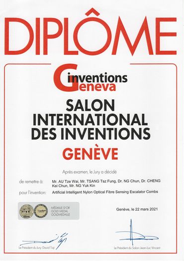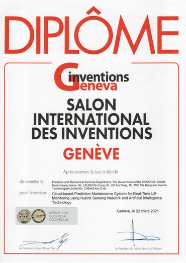 Avaron Technologies Limited is very honoured that the Intelligent Lift Monitoring System (i-LIFTMon) and Intelligent Escalator Monitoring System (i-ESCLMon) have won three gold medals at the Geneva International Exhibition of Inventions. We will continue to put effort into the development of lift and escalator monitoring systems.